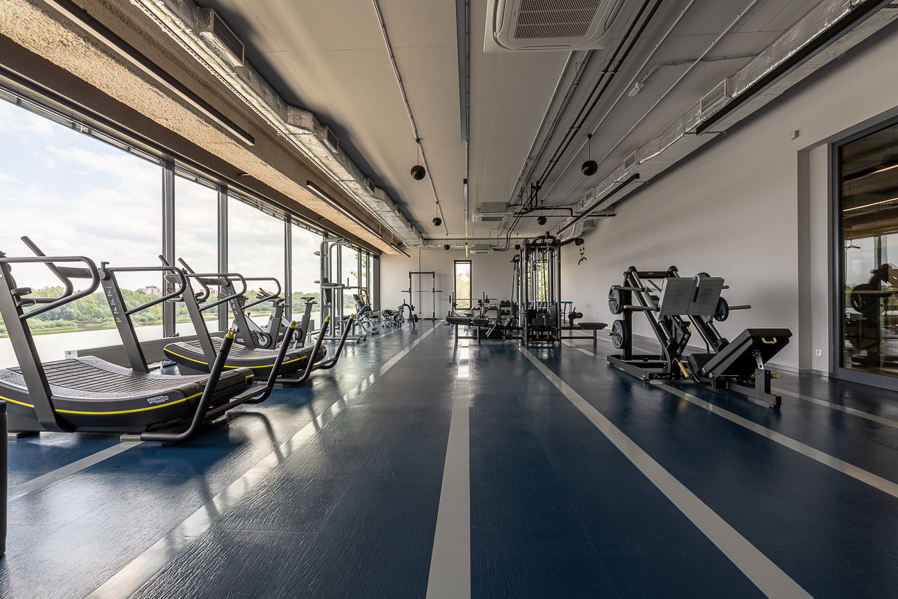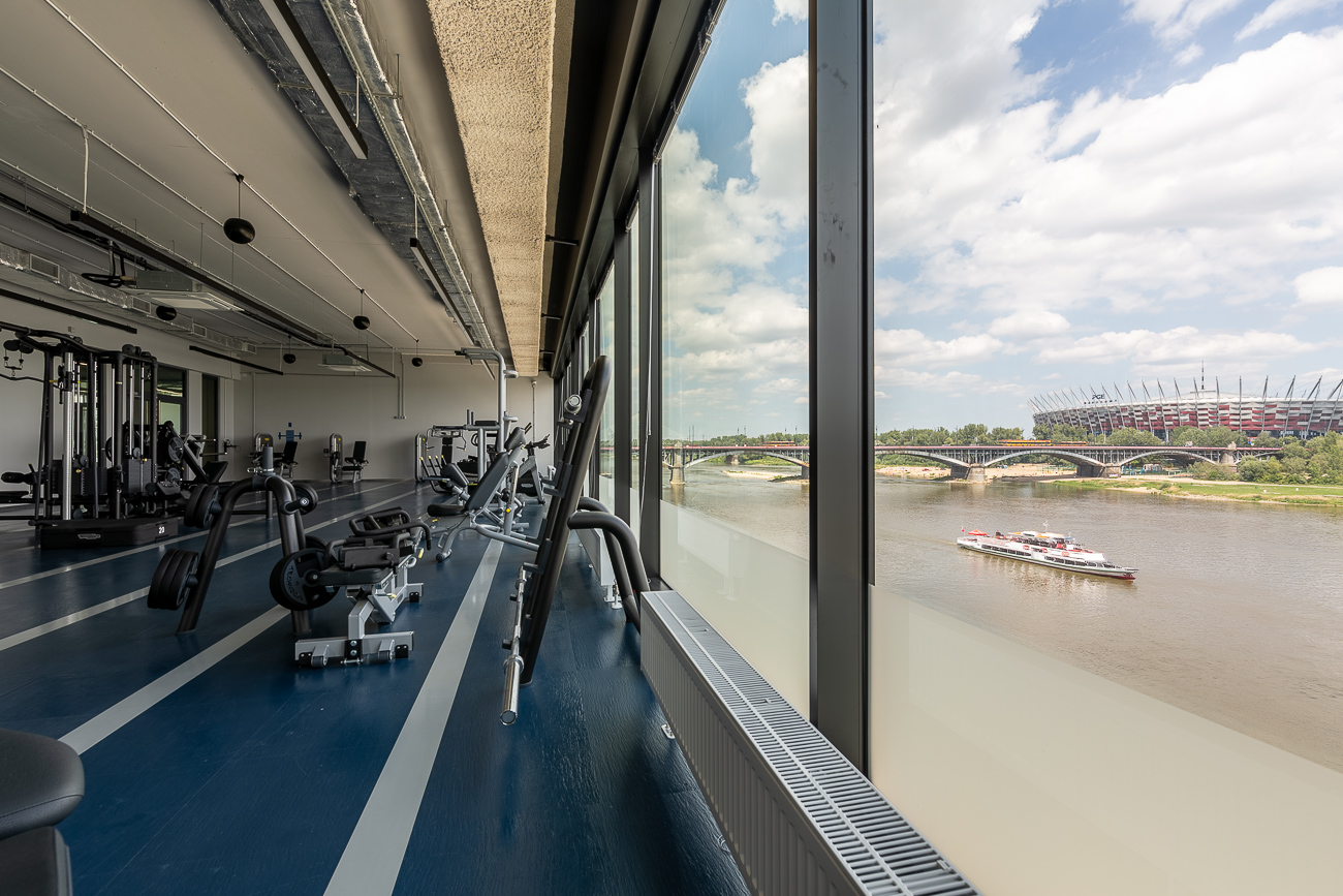 Nowocześnie wyposażona siłownia wioślarska (sprzęt Technogym) z widokiem na Wisłę i Stadion Narodowy czyni ją unikatową i jedyną w swoim rodzaju.