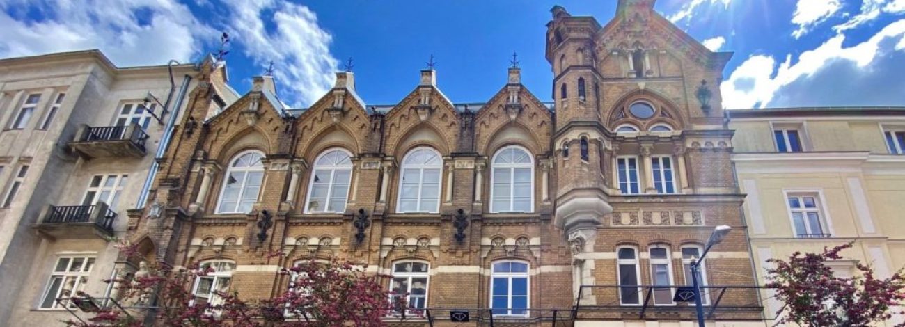 Ten pokaźny dom z żółtej klinkierowej cegły, zbudowany w stylu neogotyckim, przetrwał wojenne zawieruchy, jedynie w 1944 r. wnętrze strawił pożar. Odnowiony po wojnie, obecnie objęty jest ochroną konserwatora zabytków. Zbudowano go w latach 1895-1897 na działce podarowanej WTW przez hrabiego Ksawerego Branickiego, według projektu Bronisława Brochwicz-Rogoyskiego.